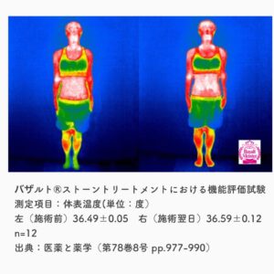 また、『医学と薬学』において、バザルトストーントリートメントが身体や肌に与える影響についての研究論文が発表されており、科学的根拠に基づいた施術であることが示されています。